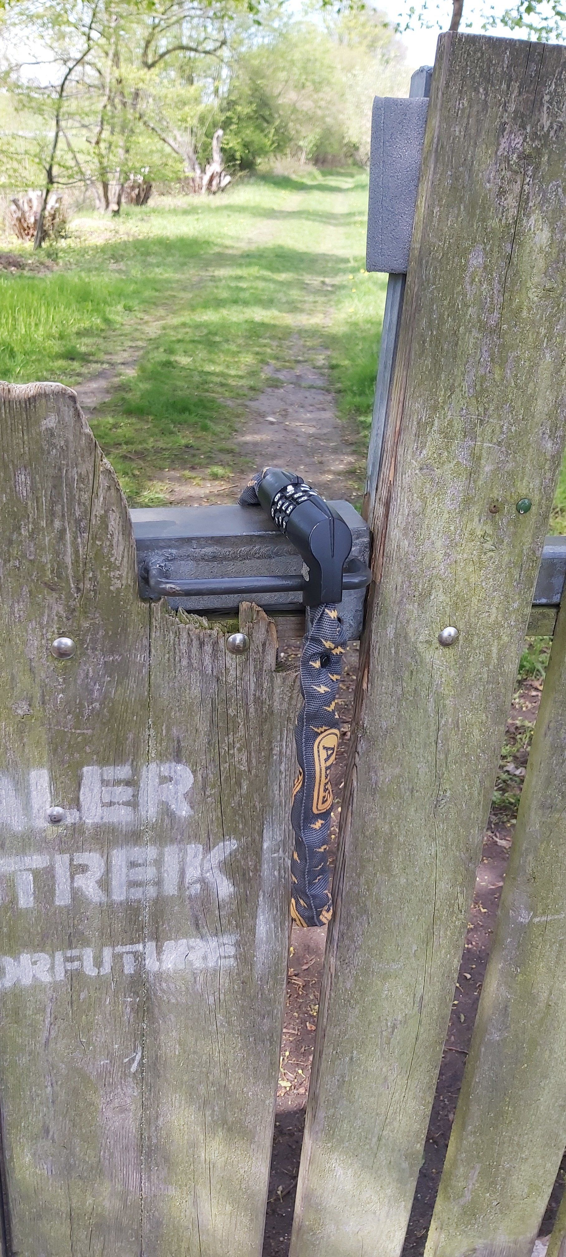 Das Zahlenschloss ist beim Verschluss des Wiesentors bitte möglichst leicht zugängig und für alle erreichbar zu platzieren.